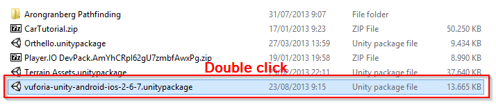 mudah, biarkan unity tetap terbuka. Double klik Vuforia SDK yang baru saja